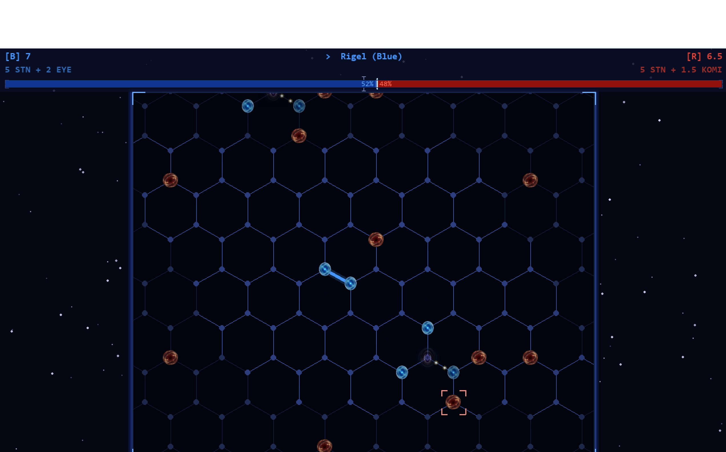 * **The Void Eye:** Enclose an empty node with three stones to form an "Eye." It grants substantial benefits (points) to your faction, but this power is lost if the eye is destroyed by an enemy invasion or your own defensive occupation.